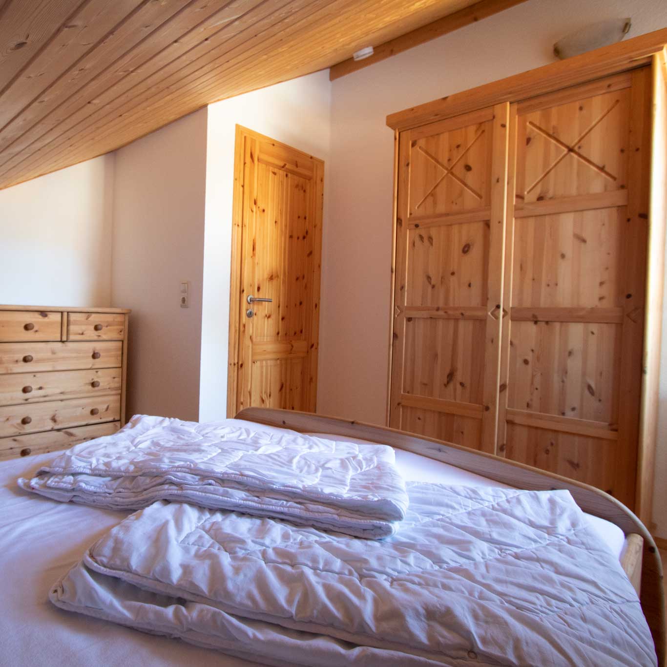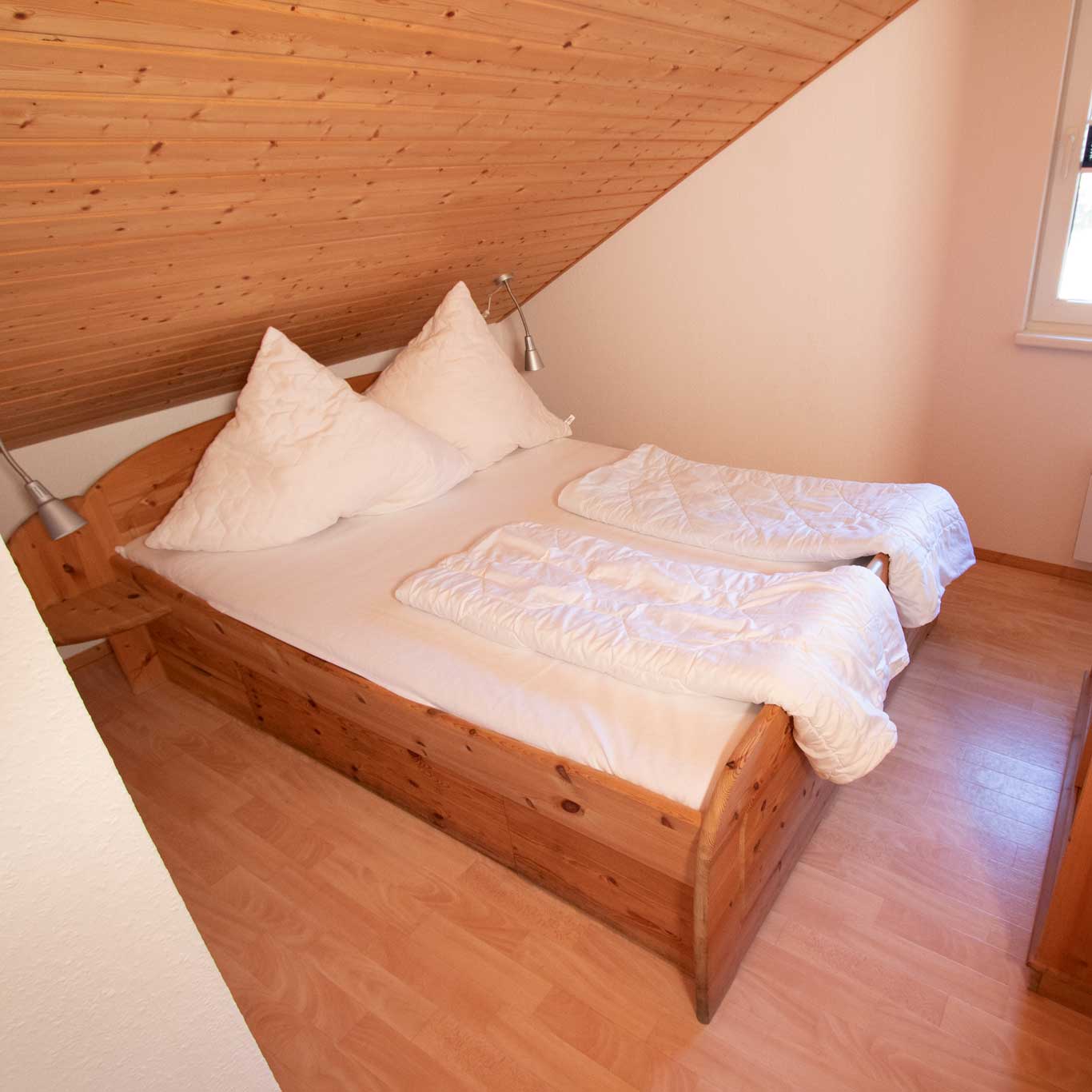 • 2 Schlafzimmer mit Doppelbett (140 cm Breite - durchgehende Matratze)
